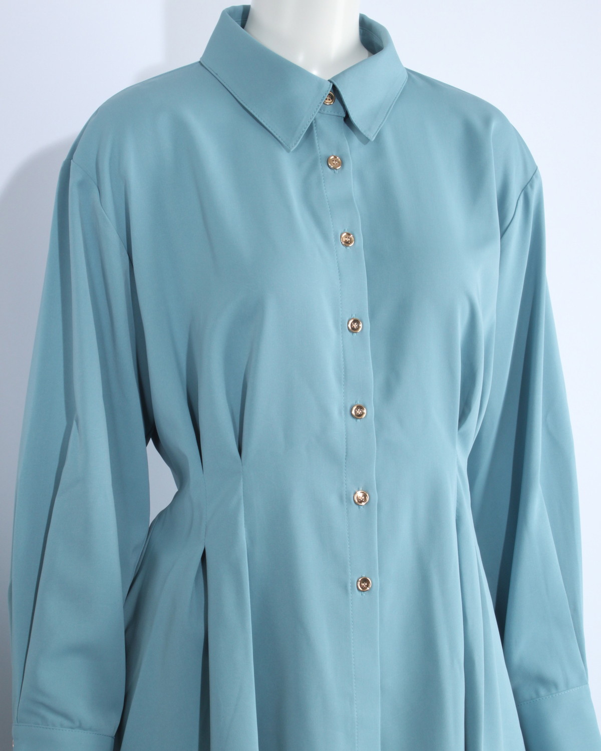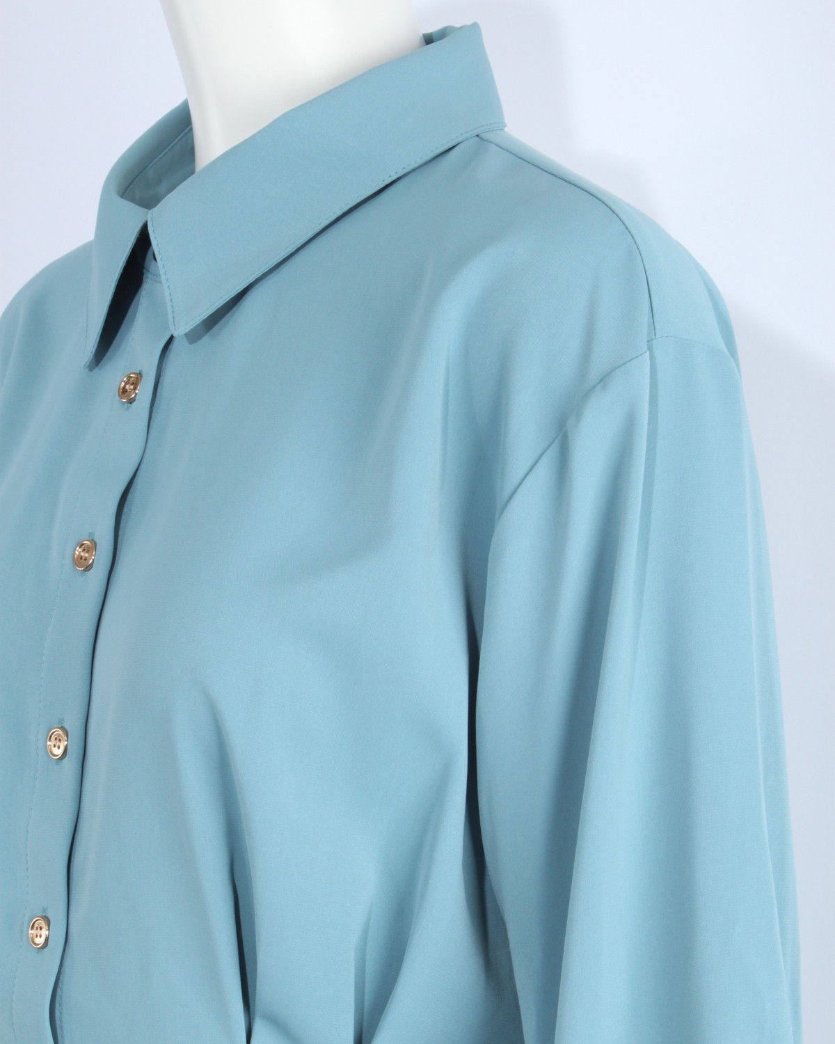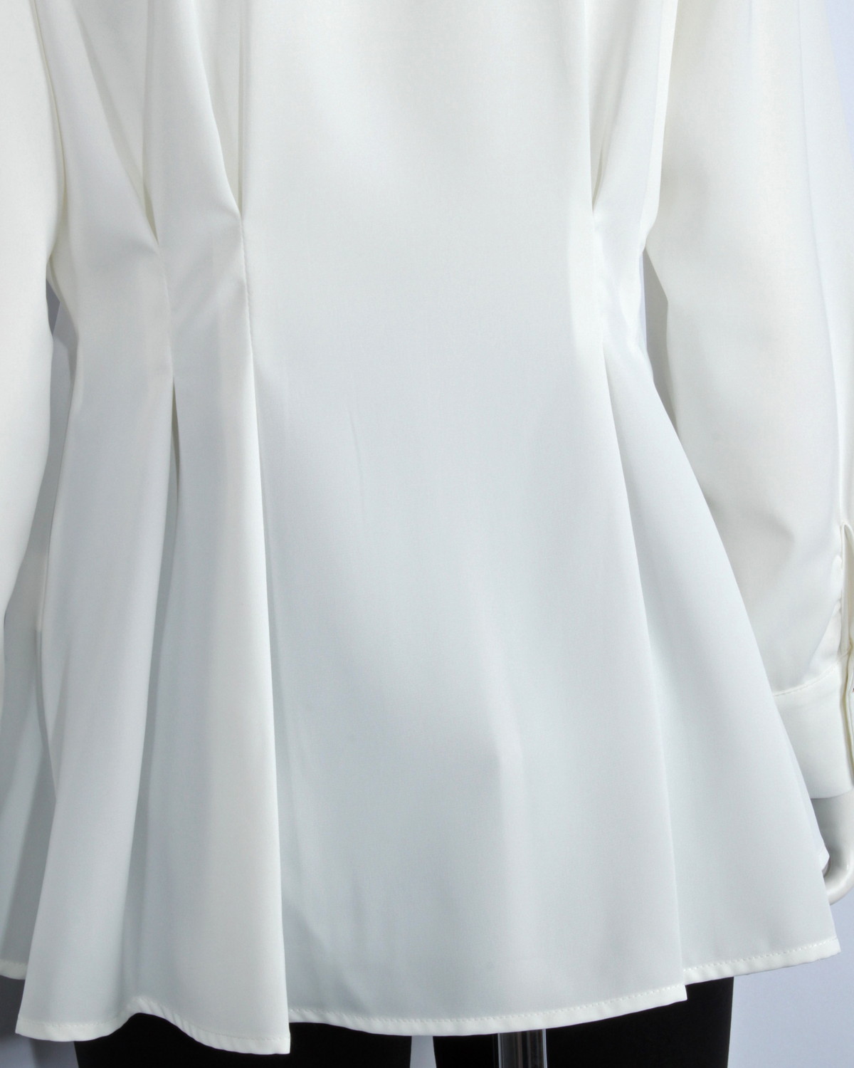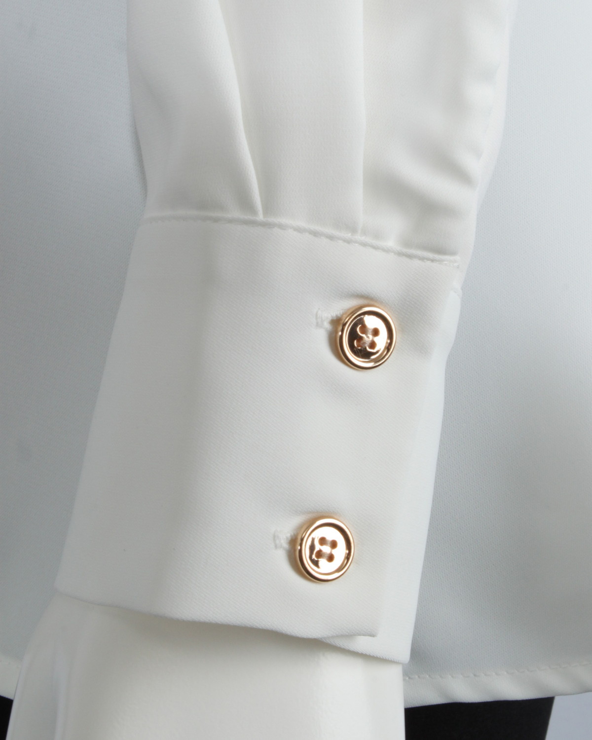 ペプラムデザインのシャツです。ゴールド釦が華やかさをプラスします。